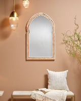 As glamorous as its namesake, this intricately embellished mirror is a little exotic and a lot glamorous, with a design inspired by both 1930's Hollywood and the Taj Mahal. It features an expertly hand carved inlay of bone and wood, in a take on the traditional pishtaq arch. Finely crafted, this piece is set to stay in the family for generations.