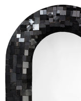Edgy and industrial, and yet somehow also glitzy and glamorous, this fabulous design is created entirely of iron, with small squares and rectangles of minimally finished metal welded together to create a contemporary patchwork. No two will be identical. Hang this baby in your entry to check your crimson lips before you set out to slay.