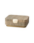 - Interior Dimensions: Beautiful bone is paired with woven raffia to create a decorative box of unusual beauty. Lined with beige ultra suede, it can store everything from extra chargers to treasured correspondences in style. With an easily integrated neutral palette and bold but simple design, it also makes an ideal addition to a desk top.