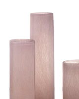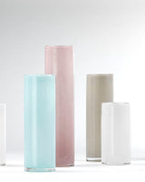 This art glass collection includes three smooth cylinder vases. Each is blown by hand, endowing them with subtle and unique striations and bubbles and enhancing the simple shapes with the organic quality that distinguishes them. Water safe, use with your favorite fresh or faux filler, or simply display.