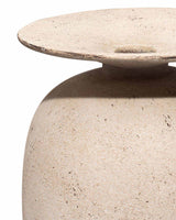 The finish is raw, gently antiqued to mirror the look of a vintage find. The shape is softly rounded, with a narrow neck that flares into an oversized lip. The look is perfection, and easily integrated into nearly any décor style.