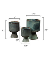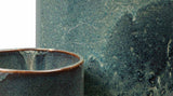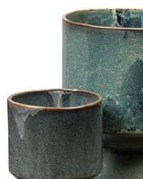 The subtle blue glaze and uncommon shapes of these ceramic handmade pots make them the perfect accessory to bring interest to most spaces. Each piece will vary with its own unique glazing pattern and coloring, giving every piece a one-of-a-kind quality.