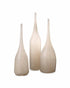 Blown glass vases that help you turn your home into your oasis, the Pixie’s elegant lines are both sophisticated and simple. They are sold in sets of three in an assortment of soothing, coastally inspired colors, and create an effortlessly dramatic grouping, instantly! Intended for decorative use only, they are not suggested for use with water or fresh florals, and their narrow necks will restrict the size of any item used as filler.