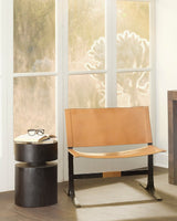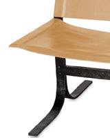 An exciting take on a contemporary classic, this luxe sling chair pairs two elemental materials, full-grain grade A leather in a rich shade of cashew, and hand-forged iron in black. Edgy and cool, but still supremely comfortable, it is an eclectic choice for decors from an urban penthouse to a rural ranch.