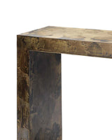 A rich metallic console with a simple linear design adds subtle glamour wherever it is placed. The Charlemagne Console Table is made from lightweight iron and features a swirling mineral patina that enhances its earthy alloy tones. The smooth surfaces reflect a subtle iridescence to elevate any room.