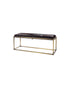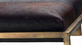 A gorgeous endpiece to add at the end of your bedframe or along the wall of an entryway. The Shelby Bench features an open design with a metal frame and luxuriously soft hide cushion. Antique brass is paired here with rich chocolate brown tones to create an alluring feel.