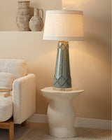 The Hobnail Table Lamp features subtle changes in color thanks to the studded detailing throughout its ceramic base. Its hand glazed finish has cream undertones that give this tall table lamp a more lightweight feel while still making a statement.