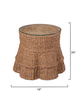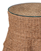 A “tablecloth” of rigid, hand-woven seagrass is draped over a strong metal frame to create this uniquely decorative accent table. The natural reed is topped with glass for stability. The perfect size for a cup of tea or a chilled glass of chardonnay, its tropical inspirations make it a wonderful choice for your casual, comfortable decor.