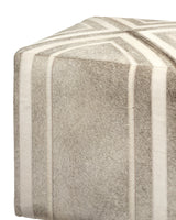 This versatile ottoman features luxurious hair-on-hide, accented with a striking graphic linear design. Artisans craft each piece to provide multiple uses, serving as extra seating, a footrest, or a surface for books or decorative items. Its texture and stitching highlight the craftsmanship while offering functional beauty. The ottoman integrates seamlessly into living rooms, bedrooms, or home offices, delivering lasting style, comfort, and flexibility in any interior.