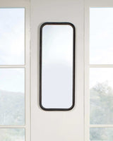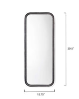The clean lines of this contemporary wall mirror’s frame are forged of hand-distressed black metal. Featuring gently rounded corners that soften the starkness of the design without distracting and the versatility of hanging horizontally and vertically. Group two or more together for a window-inspired display or use one to add height and dimension to any wall.
