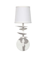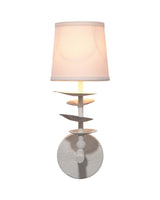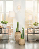 The softness of this wall sconce’s organic inspiration contrasts artfully with the unique material our artisans use to handcraft it. The plate, body, and softly curved petals are formed of white cement! It is then given a richly textured finish full of swirls, decorative dripwork, and free-form brushstrokes. A tapered white linen shade keeps it clean and bright.