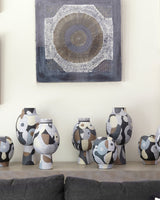 The Pablo Medium Vase is a hand-painted decorative vase to add a modern touch of interest to your home. Its matte cubist design was inspired by the Impressionist painter Pablo Picasso and features hand-done brush strokes and imperfect lines to create an artisanal look. The neutral color-blocked palette allows this modern piece to blend into almost any environment.