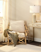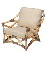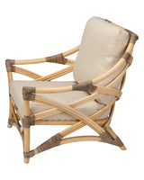 Extravagantly wrapped rattan in contrasting finishes of matte grey and soft natural make up the back, sides, and base of this exuberant armchair. Never one to prioritize style over comfort, Jaime adds thick fluffy muslin cushions. Perfection.