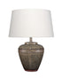 A contemporary interpretation of European antiquity, the Avondale's base has been expertly artisan-crafted from ceramic and enhanced with a gray reactive glaze. The cool palette is continued with a coordinating ceramic ball finial and silver hardware. The tapered drum shade is made of creamy white linen with a gently rolled edge, and the base is lined with black felt.