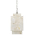 This unique alabaster pendant has strong cubic lines that float in its alabaster white glow.
