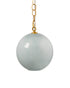 An expertly hand-blown sphere of glass hangs suspended from burnished antique brass links and a coordinating brass canopy in this simply striking pendant lamp. It shines beautifully on its own, illuminating a cozy corner of a den or entryway, or it can create a magnificent display when grouped over a kitchen island or dining table.