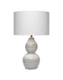 The classily shaped double gourd table lamp, with soft neutral waves of glazing, adds glamour & dimension to contemporary interiors.