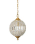 Inspired by the ornate mirrors in the halls of Versailles, this eye-catching crystal orb pendant instantly elevates the glamor of any room. The pendant's body is a caged sphere wrapped in hundreds of crystals in various sizes, and the finials are even more delicately detailed. The light shining through the crystals creates a disco-ball effect, projecting fractal shapes on nearby surfaces. Consider hanging it above a vanity, side table, dresser, or entryway. The fixture is suspended from a coordinating 8-foot chain in antique gold, and professional installation is recommended.