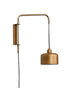 This swing arm wall sconce makes a stylish statement with its polished satin brass shade. The adjustable rod can swing 180 degrees, and the black cloth cord can be pulled to adjust the height of the shade. This wall sconce is an inspired solution when tabletop space is limited: the perfect accent to add by an armchair, bedside, or blank wall for a touch of unexpected drama.