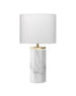 The balanced geometry of a hexagon in a slender white marble column of stunning simplicity, capped in antique brass, makes for a perfect accent lamp.