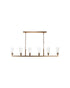 The stylish angles of the Linear 6 Light Chandelier provide a warm illumination that highlights any bar, counter or dining room elegantly. This hanging fixture modernizes the classic vintage torchier with clear glass shades and metallic chain link hardware.