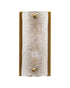 This clear decorative glass treatment feels like melted ice against an antique brass back plate. We have two sizes in this wall sconce. They can be placed in any room in the house and hang vertically or horizontally.