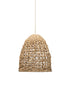 The rusticity of this coastally inspired pendant is tempered with upscale elements like a coordinating wrapped cloth cord. The natural fraying and slight color variations found in the corn straw rope used to create it make each lamp unique, and a one-of-a- kind tropical treasure.