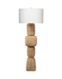 Hand-selected chunks of mango wood are used to craft these one-of-a-kind floor lamps. True works of art, each is created by local artisans in the Naga region of India, known for its rich tradition of hand-carved woods. The motifs are timeless, both decorative and deeply evocative. The lamps are topped with a natural linen drum shade and a carved wood ball finial.