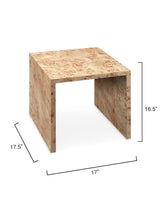 This collection of furniture pieces in burl wood veneer elevates the simple, sophisticated lines of a Parsons silhouette with the natural, organic pattern of burl wood. Finished in a soft natural stain, this set of two nesting tables adds a subtle elegance to any space.