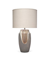 The Landslide Table Lamp makes a statement in design and scale with a blend of abstract and traditional style. With a neutral earthy color palette, this piece’s hand done ceramic base contrasts a glossy reactive glaze with a matte ceramic texture.