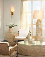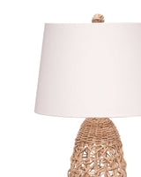 Inspired by a warm, Hawaiian summer breeze, this floor lamp will add a relaxed yet elevated atmosphere to your home. The alternating woven pattern adds interest to the body's rounded cone-like shape, with a matching corn rope finial topping a white linen shade. Expertly handcrafted of natural material, the crisscrossed openwork weaving adds texture and fresh style to any setting. It's strong in stature but light and airy in structure.