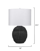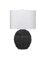 The perforated patterns on the curved and dimpled base of this table lamp reflect Jaime’s interpretation of the craters, mountains, and seas of the lunar landscape. While the design’s celestial inspirations are subtle, the look is not! The bold and decorative patterns are created one-at-a-time by talented artisans. Each lamp is topped with a linen rolled-edge drum shade in white and an acrylic ball finial; the sockets and 3-way turn knobs are silver. The Lunar lamp is available in your choice of Matte Black or Matte White. No two will be identical.