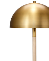 Beautifully burnished metal is the standout design element of this updated version of a classic table lamp. A simply finished rubber wood base tempers the warmth of the golden shade. It offers filtered and focused illumination, and makes an inspired choice for home or office.