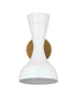 A mid century inspired task wall sconce with an hourglass hood with two directional sockets. One upward socket and one downward within the swivel hood make it easy to direct light for a great working environment. The antique brass silhouette creates a classic mid century modern look.