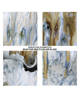 Inspired by the ocean spray created by a breaching whale, these vases capture, in ceramic, the exuberance of that moment. From the crimping in their openings to their expertly applied blue reactive glazes, each of these vessels is created and finished by hand. No two are identical.