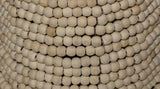 Mango wood beads are artisan carved and finished in soft cream, and hand-strung onto metal wire to form the playful yet supremely stylish base of these remarkable floor lamps. Each bead is as unique as the natural material it is formed of, and these variances in shading, size, and finish create mesmerizing one-of-a-kind patterns, ensuring that no two are identical. Perfect for a casually chic way to illuminate any modern décor.