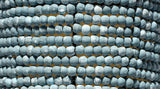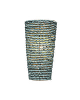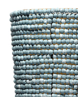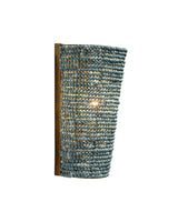 The simple, tapered lines of this wall sconce are beautifully accented by hand-carved blue mango wood beads, each one individually finished so no two beads are alike. Their soft blue tones and delicate variations lend warmth and visual texture, creating a soothing, ambient glow. Perfect beside a bed, armchair, or hallway, it brings handcrafted elegance, natural beauty, and timeless character to interiors both modern and classic.