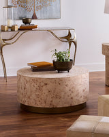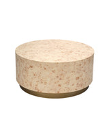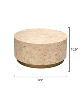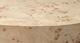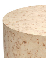 Artisans mosaic small pieces of bleached burl wood veneer together to create this unique side table, showcasing the natural depth and intricate pattern of the wood. This one-of-a-kind, artisan-crafted piece combines beauty and durability. Its warm neutral colors, clean lines, and elegant proportions allow it to complement a variety of décor styles while refreshing and elevating any interior space with timeless charm.