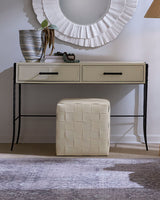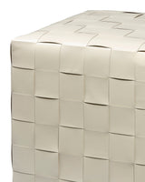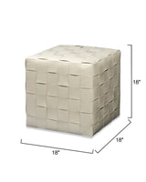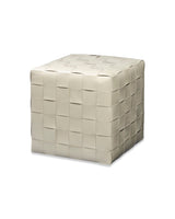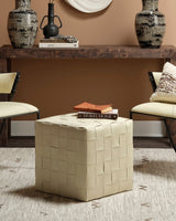 Thick, supple strips of top-quality hide are carefully woven by hand to create these exceptional ottomans. Whether you rest your feet on one, or offer it as extra seating to a guest, its luscious cream leather and simple, square lines make it an easy addition to virtually any decor style. It looks as good in a luxe loft as it does in a casual beach house! Four simple metal feet complete the design.