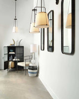 This collection of sconces and pendants features off-white drum shades in pure linen, producing a softly diffuse glow. Each is suspended from a delicate framework of antiqued brass or oil-rubbed bronze, and is as effortlessly appealing as the Southern California lifestyle that inspired it.
