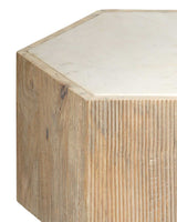 Simple, yet stunning our Argan Hexagon tables use a ribbed washed wood and white marble to create a brilliant side table that is light in feeling but large in size, perfect for any airy living room.