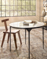 Forged from iron and topped with a circle of pure creamy white marble, this refined dining option is distinguished by the elegance of its lines and the skill of the artisans who craft it. The delicacy of its slim legs belies their strength, and the simplicity of the classic design makes it an easy, instant update for most contemporary decors.