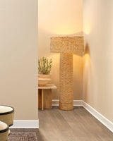Inspired by the rich tradition of weaving and the abundance of natural, sustainable fibers, this tropical wonder evokes memories of warm breezes and balmy beaches. The floor lamp is entirely wrapped in natural cornstalk, and the coordinating shade is made of the same woven material. Pair it with deep, comfortable seating in light and bright colors to create your own oasis.