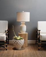 A matte textured finish adds a white sandy feel to the ceramic form of the Gilbert Table Lamp. It’s topped off with a woven grass cloth shade that adds a natural and organic touch to finish off this monochromatic piece perfectly.