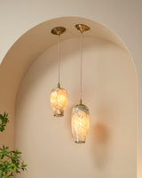 The Helen Pendant’s individually glass blown shape is complemented by organic strokes of color; reminiscent of a painter’s wide, watercolor brush. Blowing each pendant by hand creates a unique shape, that may be more round, more elongated, or asymmetrical to enhance the broad strokes of color.