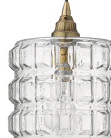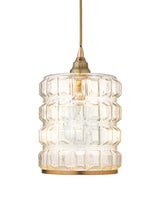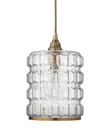 The glass block grid pattern and antique brass accents give it a cool retro Mid Century Modern look.