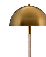 Beautifully burnished metal is the standout design element of this updated version of a classic floor lamp. A simply finished wood base tempers the warmth of the golden shade. It offers filtered and focused illumination, and makes an inspired choice for home or office.