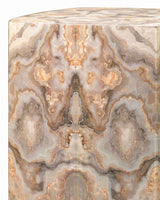 One-of-a-kind patterns in a soft neutral palette of gray and cream lacquer swirl in this solid resin side table. The marbling effect our artisans create recalls the look of natural stone, and the patterns and finish may vary.