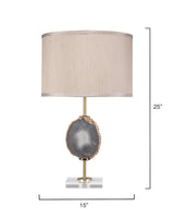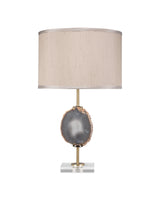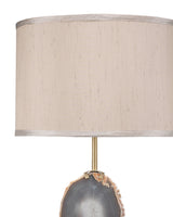 A modern piece with elegant and organic simplicity. The Agate Slice Table Lamp brings its gorgeous stone base to the front of your attention. This semiprecious stone belongs to the quartz family and is often cited to have properties that diffuse negative energy.