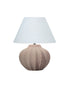 The Clamshell Table Lamp is the perfect mix of coastal inspiration with rustic textures. The imperfect, chipped and crackled finish enhances the highs and lows of the ribbed shape. A white linen drum shade is the perfect finishing touch to add a light, coastal fabric to this beachbound silhouette.